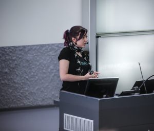 Ein weiteres Highlight des Tages war der Science Slam, auf dem Wissenschaftlerinnen und Wissenschaftler auf kurzweilige und unterhaltsame Art ihre Forschung der Öffentlichkeit präsentierten. So konnte das Publikum erfahren, was ein Chatbot ist, wie man Fleisch von glücklichen Schweinen erkennt, dass man einen 3D-Drucker auch zum Drucken von Biomaterialien nutzen kann und wie auch kleinste Risse in riesigen Stahlträgern schnell und einfach erfasst werden können.